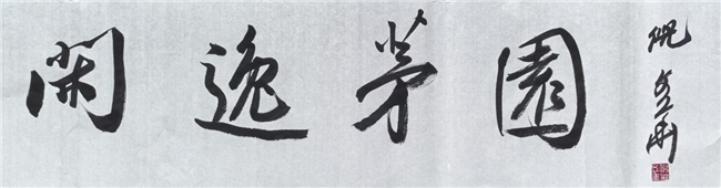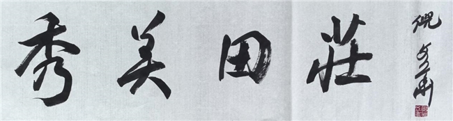 座谈会上,李得高简要介绍田庄乡基本概况、核心优势及发展规划,提出需文艺资源赋能文旅融合的需求。随后,现场氛围升温:倪文华挥毫题写“秀美田庄”“闲逸茅园”,笔力浑厚尽显乡村特色;省书协副主席、秘书长胡紫桂以“阜盛田庄”“六亿年”落笔,传递文艺担当;省美协副秘书长曹先兵则现场绘就《茅园清秋》,将庄园的田园风光跃然纸上。