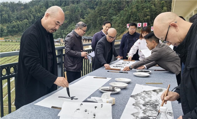 11月12日,湖南省文联党组成员、副主席、省书协副主席倪文华率调研采风团,走进安化县田庄乡茅园村,在新田园共享生态庄园开展调研座谈,并以笔墨创作助力乡村振兴。安化县副县长禹丹,田庄乡党委书记李得高陪同。